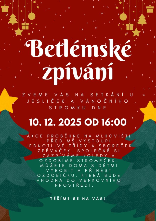 Zveme vás na setkání u jesliček a vánočního stromku.