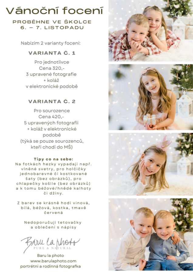 V pátek 7. 11. Kapičky, Sluníčka, Duháčci + sourozenci z těchto tříd.
